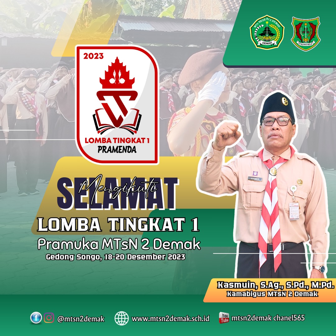 Semoga sukses selalu dalam kegiatan LT 1 tahun 2023, teriring doa dari segenap keluarga besar MTs Negeri 2 Demak untuk kesuksesan Pramuka MTs Negeri 2 Demak.